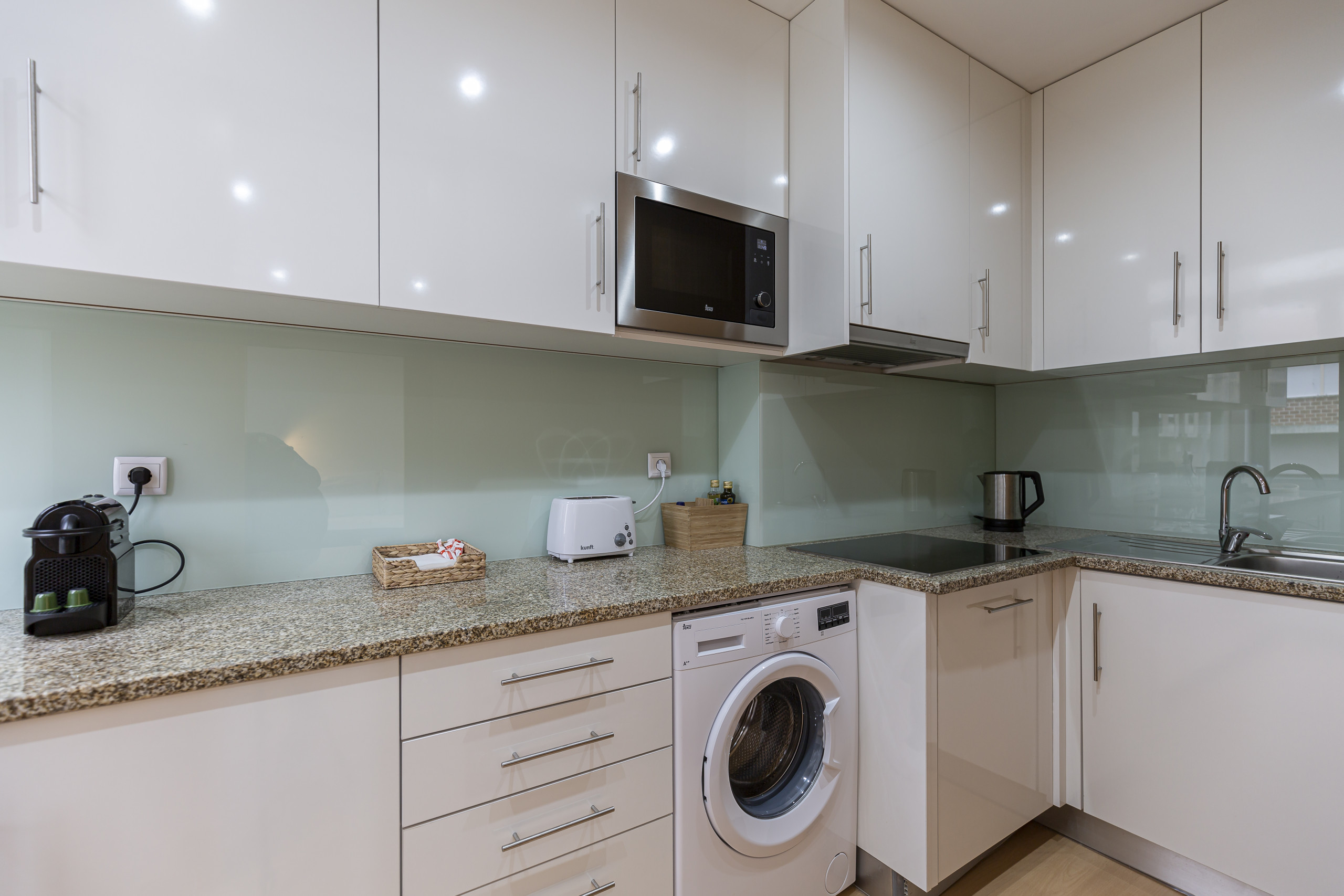 • Utensílios de cozinha, placa de indução, frigorífico, congelador, torradeira, forno e micro-ondas