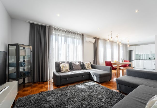 Discover this elegant 138m² apartment, ideal for 15 people, where modern design meets comfort in a prime location in the heart of Porto.It consists of five bedrooms with three queen-size beds, two double sofa beds, four single beds, and six bathrooms equipped with showers and hairdryers.